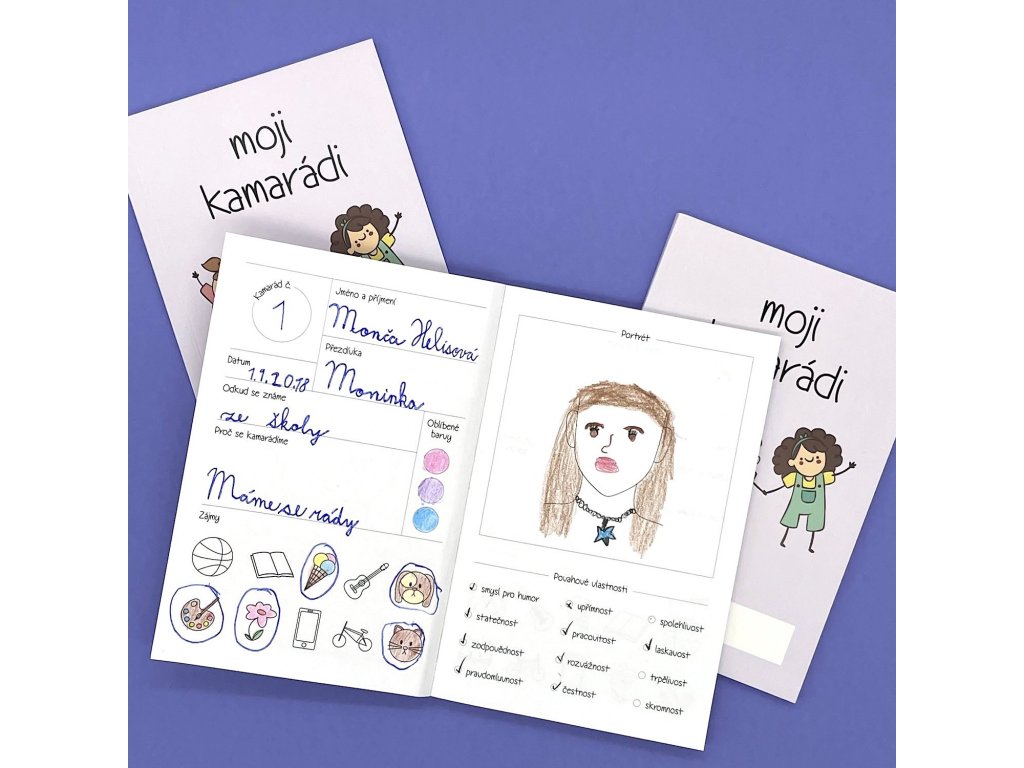 Zápisník je navržen speciálně pro malé děti, je snadný pro vyplňování, má vizuálně přívětivé rozvržení a volný prostor pro portréty přátel. Zadní strany jsou věnované poznámkám a zábavným úkolům.