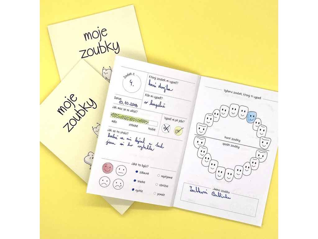 Vyplněný happybook slouží jako malý památníček. Uchová vzpomínky na každý mléčný zoubek a přitom nezabere skoro žádné místo.